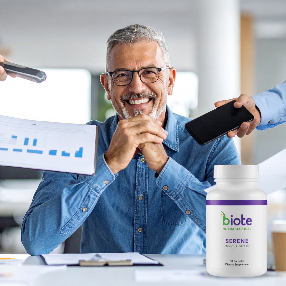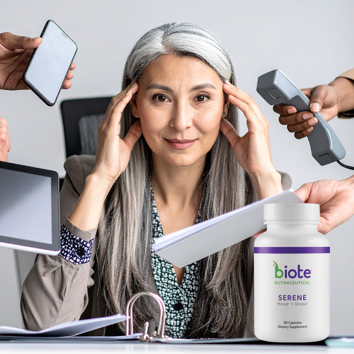 Biote SERENE provides a natural way to support a healthy stress response in individuals who feel wired, anxious, and overwhelmed.