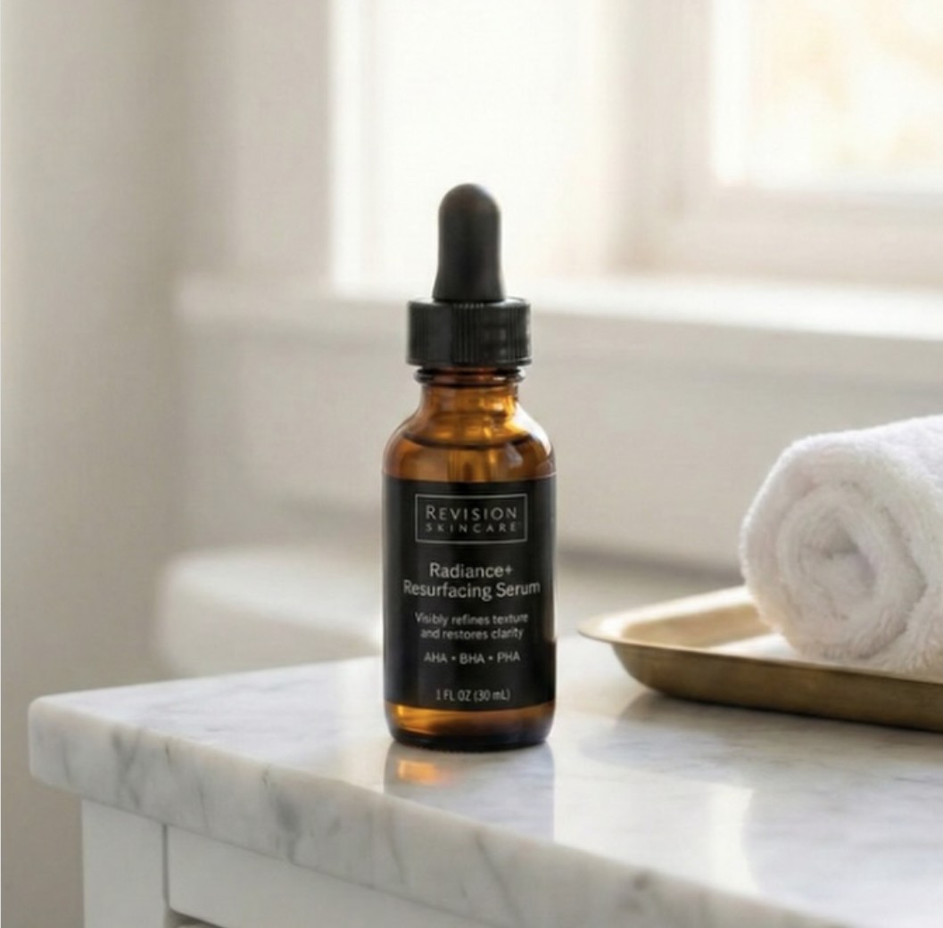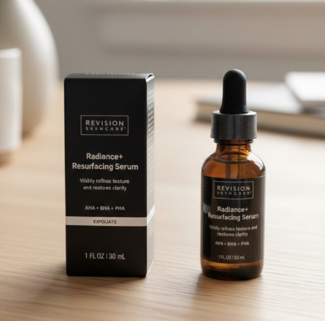 Revision Radiance+ Resurfacing Serum is a high-performance, multi-acid treatment serum designed to be your “overnight reset” for dull, rough, or congested skin. Powered by over 15% AHA, BHA, and PHA, it accelerates cellular turnover, visibly refines texture and pores, and restores clarity so skin looks fresher, smoother, and more radiant by morning.