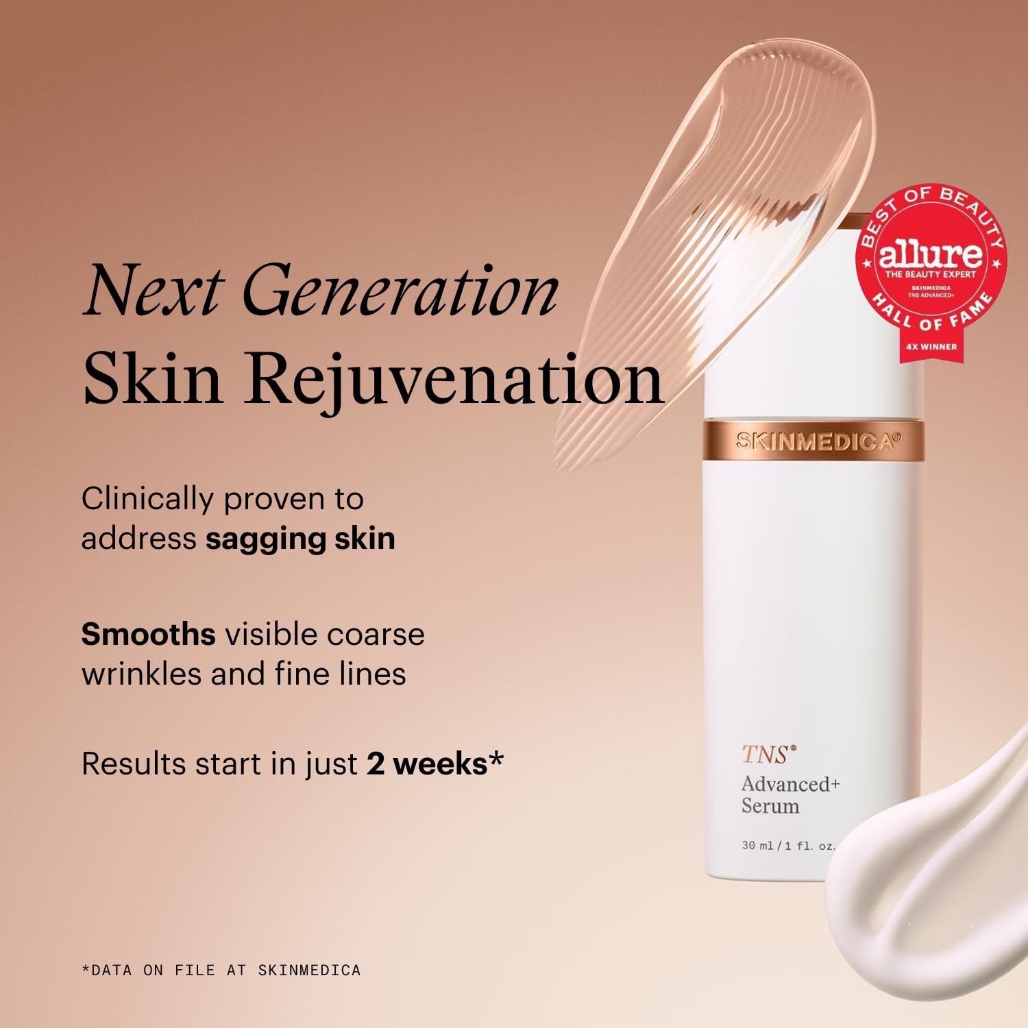 Get ready to reveal your most radiant skin with SkinMedica TNS Advanced+ Serum! This innovative, skin-renewing formula is specially designed to enhance the appearance of fine lines, coarse wrinkles, skin tone, and texture. It’s the only growth factor product scientifically validated to tackle sagging skin, utilizing cutting-edge research and SkinMedica’s expertise.