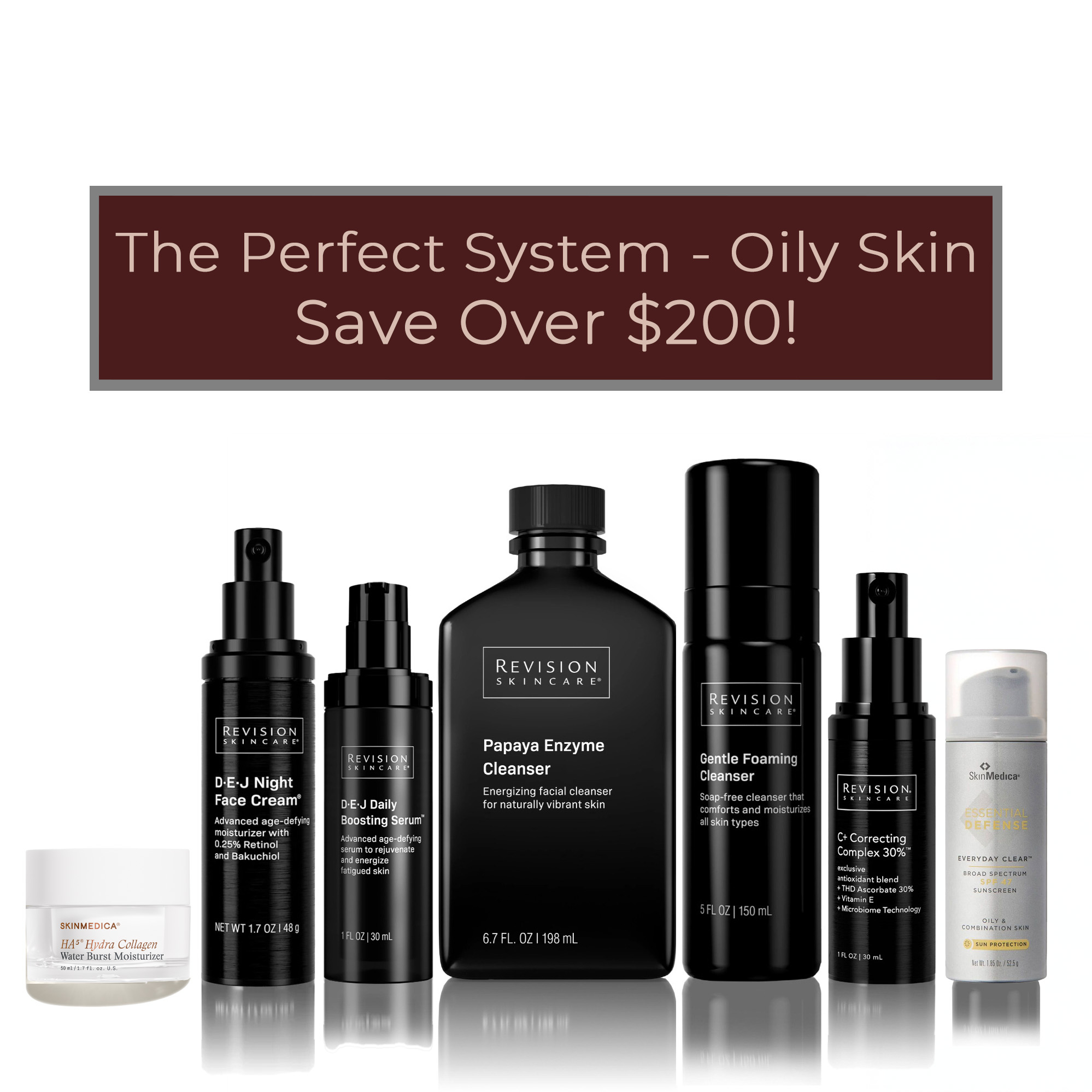 The Perfect System – Oily Skin is a shine-smart routine designed to balance oil while delivering brightening, firming, and lightweight hydration—finished with a comfortable, non-tinted daily SPF. Enzyme cleansing smooths and decongests the surface without stripping; a powerhouse vitamin C complex helps even tone and protect against daily stressors; a targeted boost serum supports a tighter, refined look; and featherlight hyaluronic hydration leaves skin fresh, not greasy. The nighttime moisturizer supports barrier repair so skin wakes up balanced and smoother. The clear, broad-spectrum sunscreen wears matte-leaning, resists greasiness through the day, and supports long-term clarity with consistent protection. Regularly $804; 25% off with your EasySave Subscription = $602.52.