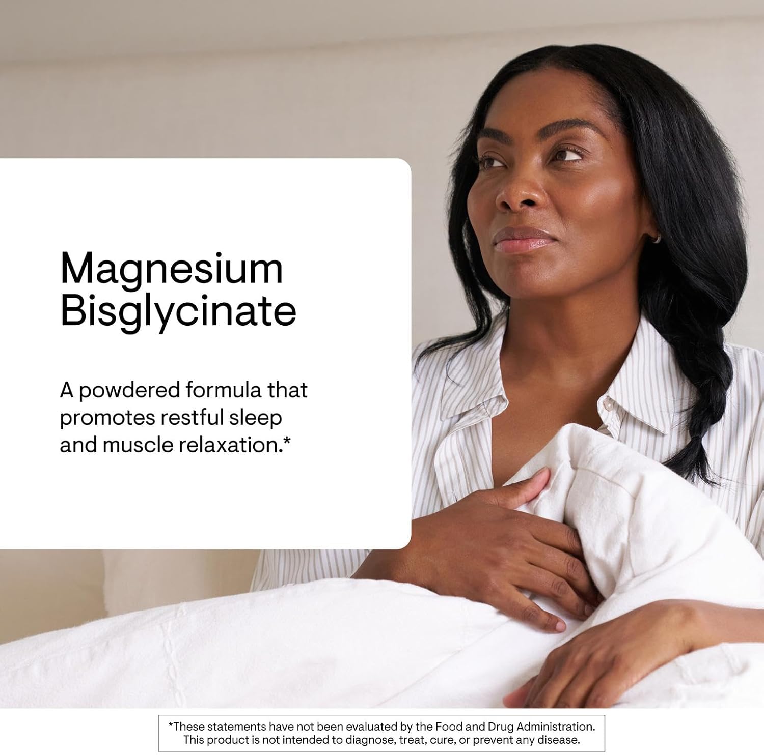 •  Glycine is a neurotransmitter that promotes relaxation and stress reduction in the body – making Magnesium Bisglycinate a good choice for pre-bedtime supplementation to support restful sleep