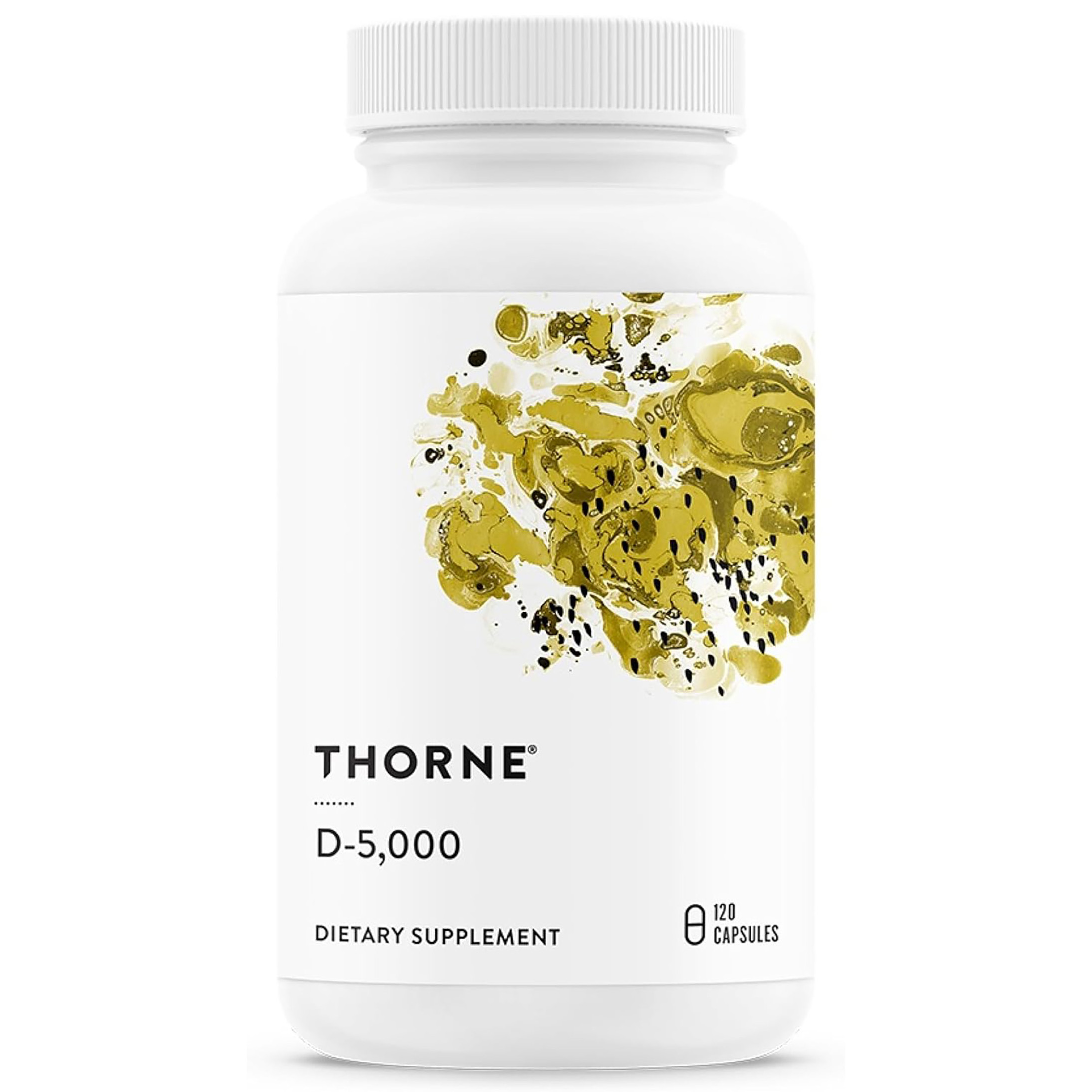 Thorne D-5000 provides an unbeatable 5,000 IU of highly absorbable vitamin D3 in a single, convenient capsule—perfect for supporting your bone strength, muscle health, immune defenses, and mood stability every day. Crafted with premium cholecalciferol (D3) in a lipid base, it ensures maximum absorption, giving your body the nutrients it needs to thrive. Completely free from gluten, dairy, and soy, and rigorously tested for purity, this supplement offers reliable, consistent dosing you can trust. Whether you have limited sun exposure or higher nutritional needs, D-5000 layers effortlessly with your multivitamin and magnesium, boosting calcium utilization and enhancing your overall vitality. Invest in your health with a supplement designed to help you feel your best every day. delivers 5,000 IU of highly absorbable vitamin D3 in a clean, one-per-day capsule to support strong bones, muscle function, immune resilience, and healthy mood. The formula uses cholecalciferol (D3) in a lipid base to enhance uptake, is free of gluten, dairy, and soy, and features Thorne’s rigorous purity testing for reliable, consistent dosing. Ideal for adults with limited sun exposure or higher needs, it layers easily with a multivitamin and magnesium to optimize calcium utilization and everyday vitality.