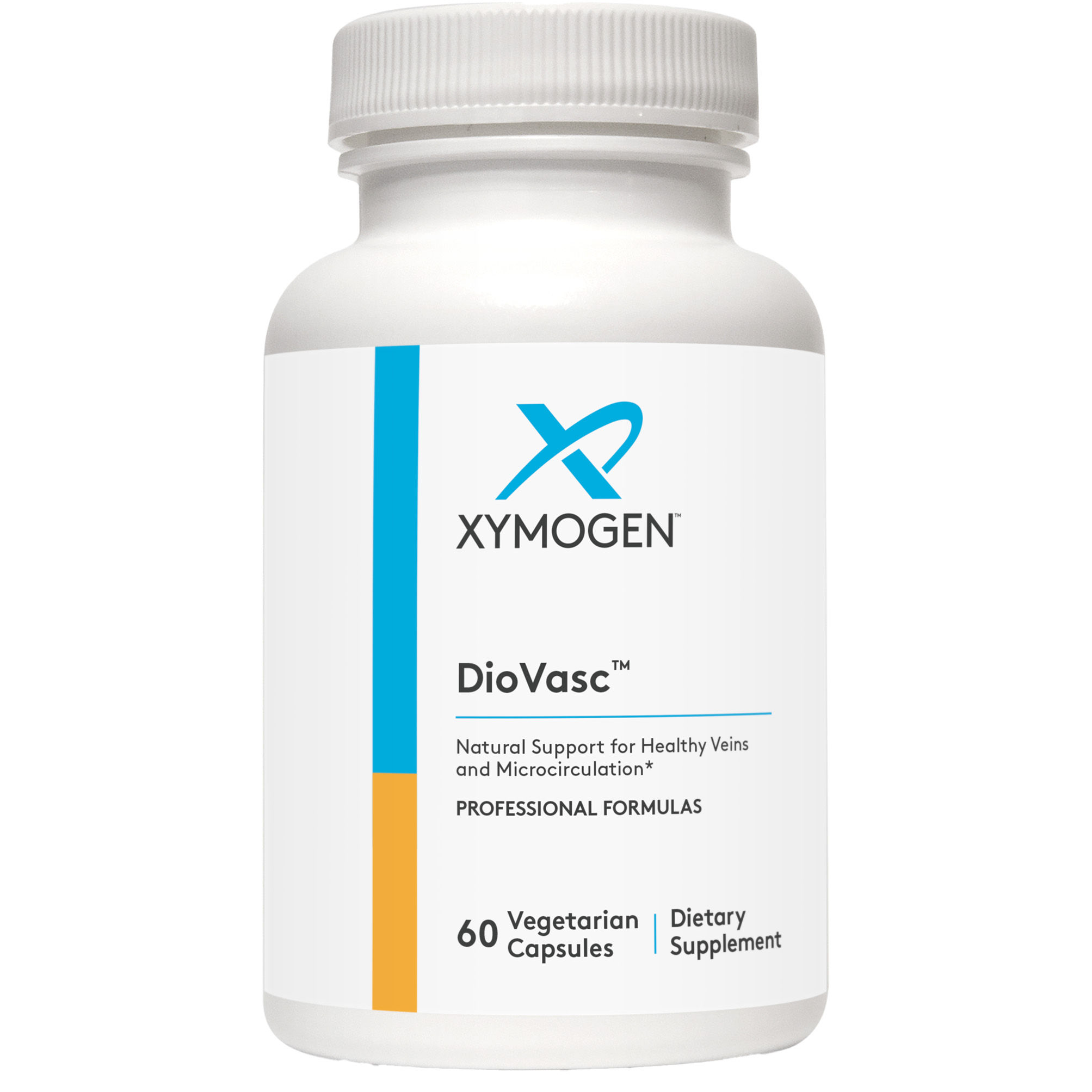 XYMOGEN DioVasc is a proprietary blend of micronized diosmin and hesperidin, making up a micronized purified flavonoid fraction (MPFF) that works to support vein health, circulation, healthy capillaries, glucose metabolism, healthy lymphatic drainage, and more. 60 capsules.